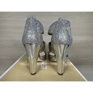 MICHAEL Michael Kors Berkley TStrap Silver Glitter Zip Up Peep Toe Heel Size 7M