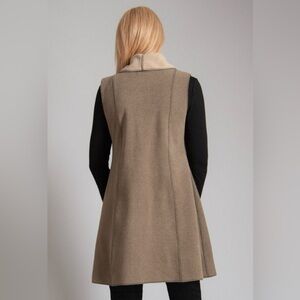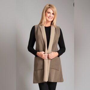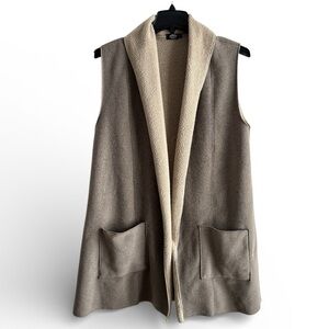 Cameleon Sylvia Vest Taupe & Cream Sherpa Lined Open Front Large Lagenlook Tunic