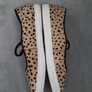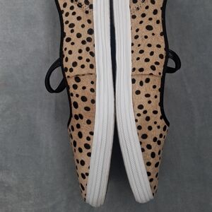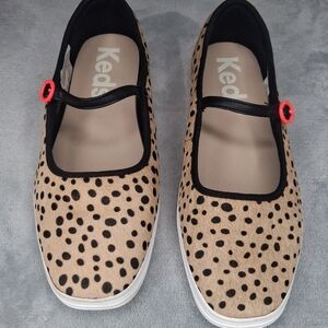 This Mary Jane sneaker by Keds® features a square toe and a genuine calf-hair upper. It is designed with an adjustable strap with buckle closure, a synthetic lining, and a synthetic and rubber sole. It is stamped with a signature logo at the heel.