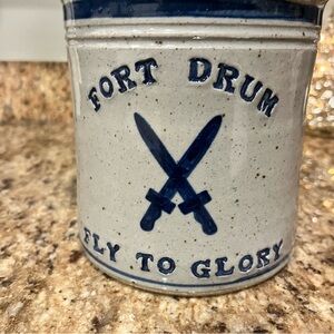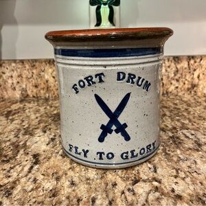 STONEWARE HAND Salt Glaze Crock Utensil Holder Fort Drum Army 10th Mountain Unit