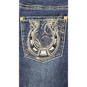 Hydraulic Women High Rise Embroidered Bootcut Jeans Size 7 Blue Bling Horseshoe