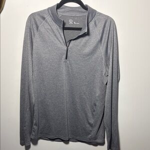Stylish gray long sleeve shirt with a quarter-zip design. Perfect for casual wear.
