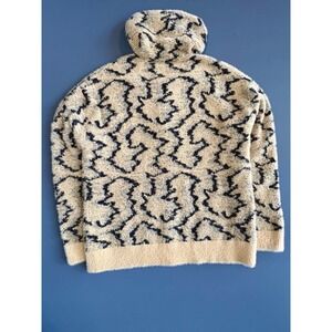 Zara Women's Fuzzy Zip-Up Hoodie Jacket | Size Medium | Black & Cream Abstract