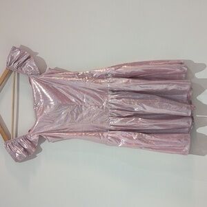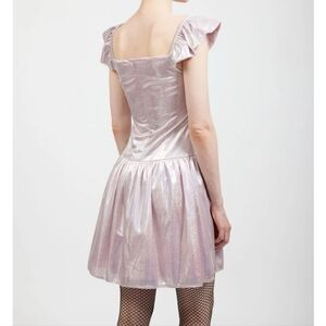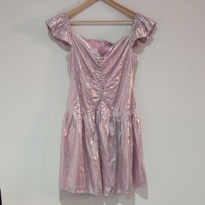 Batsheva Designer Shimmery Metallic Pink flutter sleeve sweetheart Dress size8/4