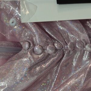 Minidress in pink metallic stretch fabric with iridescent sparkle