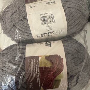Soft and cozy Bernat Blanket yarn in dark grey. Perfect for knitting and crocheting projects.Bernat Blanket yarn is bulky and great for working up a blanket quickly. Both skeins are new in their original plastic packaging. NWT