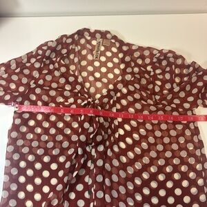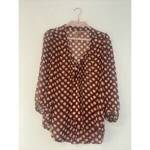 Eye Shadow Orange Polk A Dot Blouse Sz Med Bow Tie Folk Boho Professional Offic