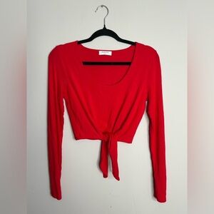 Chic long sleeve top with a stylish tie-front. Perfect for casual or dressy looks.
