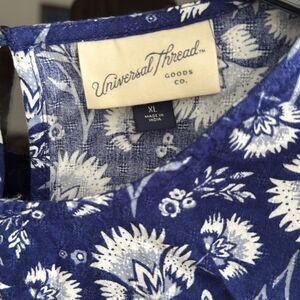 Universal Thread Peplum Blue Floral Balloon Sleeves Blouse with ruffles. Size: xl. Excellent used condition. Fabric: 53% cotton, 47% rayon. Measurements approximately while laying flat: Sleeve: 18”. Length: 27”. Armpit to armpit: 21”. Smoke free and pet free home.