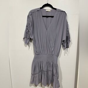 Ramy Brook Lavender Boho Mini Dress Smocked Waist Tiered Ruffle Size Small