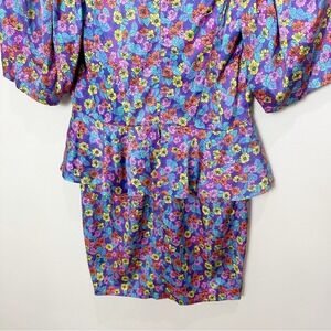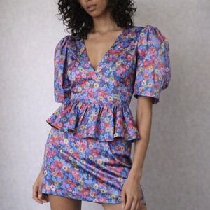Rotate Birger Christensen Floral Peplum Mini Dress Size 6 80s Cocktail
