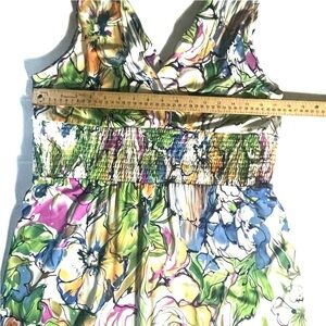 Jonathan Martin Floral Maxi Dress Sleeveless V-Neck Smocked Waist Summer Sz. 12