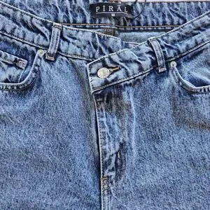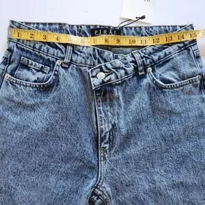 Piral Cross Button Straight Leg Blue Jeans Medium NWOT