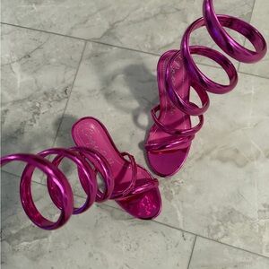 Bold fuchsia pink heels with elegant straps. Perfect for a glamorous night out.
