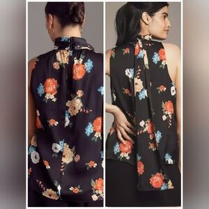 Anthropologie: NWT Silky Floral Halter Tank – Black Multi – Size L