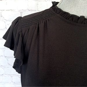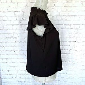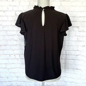CECE Mock Neck Ruffled Flutter Sleeve Top