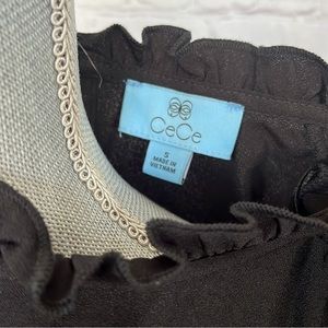 CeCe hits all the right style marks with this pretty-as-a-picture top designed with a mix of soft ruffles and polished pleats. A ruffled neck tops a jersey crepe top with plenty of feminine gathers and short flutter sleeves.