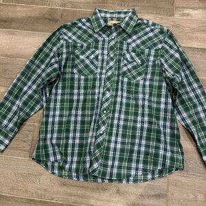 Wrangler Men’s XXL Green Plaid Western Pearl Snap Long Sleeve Shirt