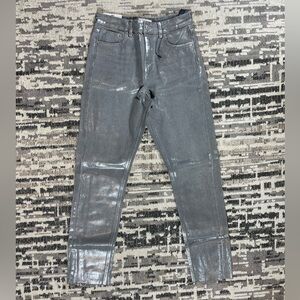 New Zara Midrise Metallic Sparkle Slim Straight Silver Grey Jeans