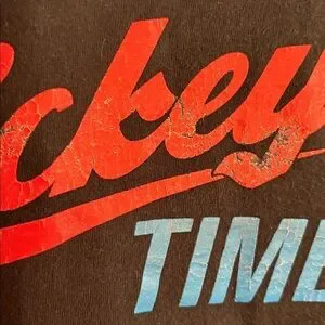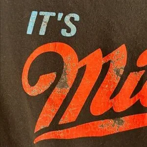 Red & blue graphic on front , in the font of Miller High Life beer , but it says ITS MICKEY TIME instead of miller time ….Mickey as in MICKEY AVALON , singer of banger hits such as Jane Fonda and My Di*K , Mr Right , So Rich , So Pretty #iykyk , if not keep scrolling haha