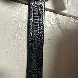 Elevate your style with this elegant black belt featuring a striking gold buckle. A perfect accessory for any outfit.