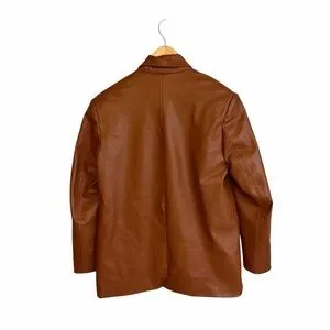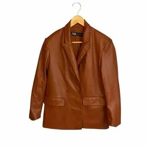 Zara Double Breasted Faux Leather Cognac Blazer