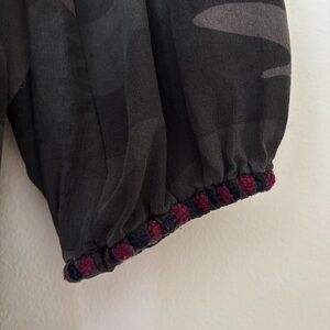 Johnny Was Workshop Camo Embroidered Silk Blouse Small