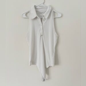 Abercrombie & Fitch White Soft Ribbed Collar Tank Top Bodysuit Size XL