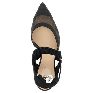 'Colibrì' mesh slingback with iconic FF motif, leather and grosgrain ribbon details, pointed toe, padded back strap with trekking hook, elastic upper strap, heel, leather sole.