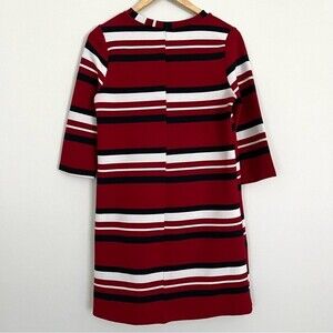 Zara Red Black and White Striped 3/4 Sleeve Shift Dress, Size S