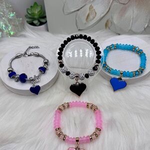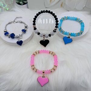 Bundle Beaded Bracelet Heart Pendant Bracelets - 4 pieces