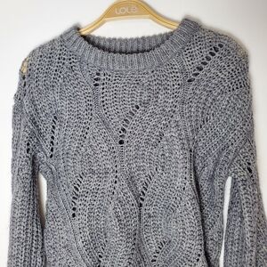 ASTR the Label Dora Pointelle Heather Grey Crew neck Knit Sweater puff sleeves