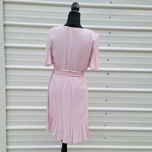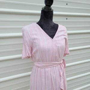 LC Lauren Conrad Belted Flutter Short Sleeve V Neck Pink Striped Dress XS