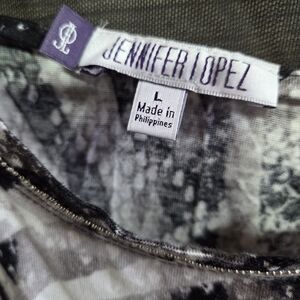 Stylish gray and white patterned top by Jennifer Lopez. Perfect for casual or dressy wear. Size Large