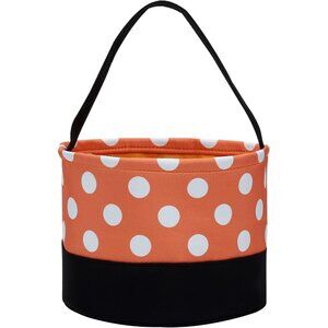 2. Classical shape:Adorable white polka dots on an orange background decorate the body of this bag with black handle and bottom. This is just one of our most popular styles. We also have Candy Corn White Polka Dot Skull Pumpkin Stripe styles. For Halloween, can choose whatever they like according to their own preferences