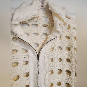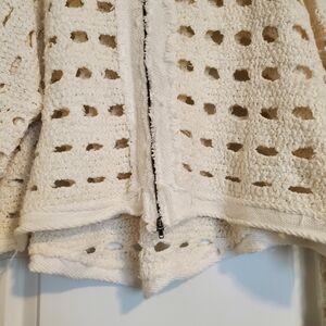 Free People Cream Hoodie Crochet Sweater Sz Med