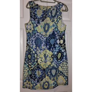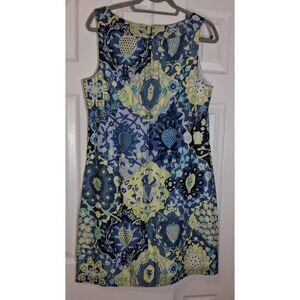 Talbots womens size 10 shift dress blue yellow floral boat neck cotton poplin