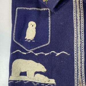 Vintage 1960s Inuit Wool and Fur Duffle Parka with Embroidered Animals - Sz M