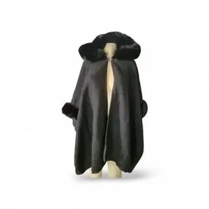 Chic black cape with luxurious fur trim. Perfect for a stylish look.