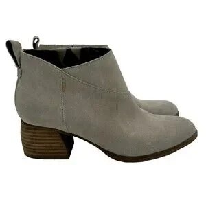 TOMS Leilani Drizzle Grey Suede Ankle Boots Women's Size 7 Western Chunky Heel