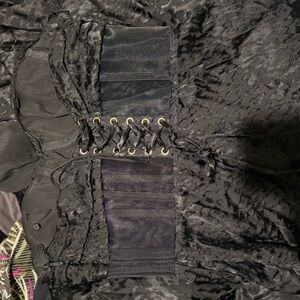 The Michael Costello x Revolve Cecilia Gown is a statement piece designed to flatter all figures. Crafted from a blend of 70% viscose and 30% nylon, with a 100% nylon contrast and a 97% polyester, 3% elastane lining. This gown features a boned bodice with unpadded underwire cups, a side slit, and a detachable throw-over sash. The adjustable lace-up back and hidden side zipper ensure a perfect fit. Measures approximately 53.5 inches from neckline to hem.