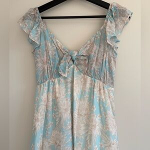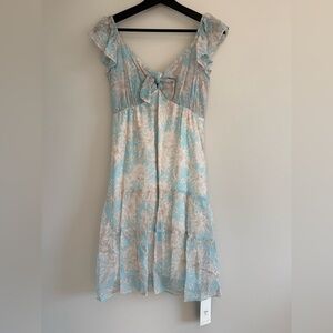 Hale Bob Light Blue Beige Floral Bow Tie Mini Dress