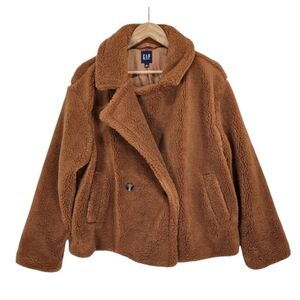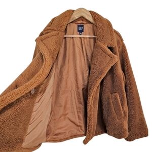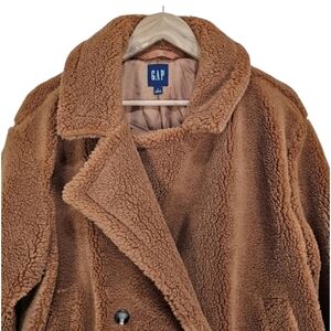 GAP Brown Teddy Coat Faux Shearling Cozy Oversized Jacket Large Neutral Soft Grl