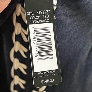 NIC + ZOE dark indigo double tie long sleeve top Blue/White New size small