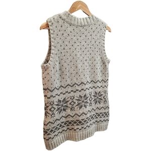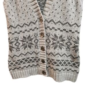 J. Jill Fair Isles Gray Sleeveless Button Front Cardigan Size Medium V-Neck