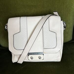 Marc by Marc Jacobs White soft leather handbag, 9" width, 8" height, 2 1/2" depth. In good condition.
