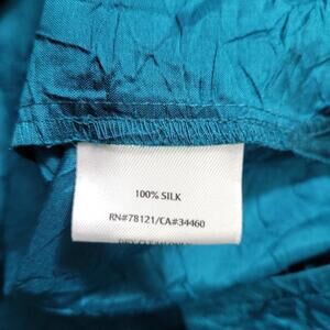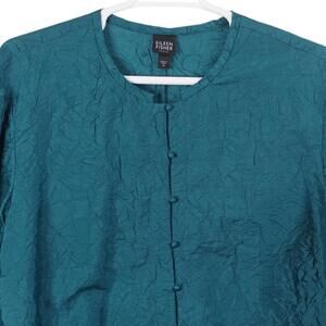 Eileen Fisher Top Women 2X Teal Blue Crinkle Silk Button Up Blouse