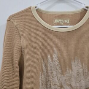 American Eagle Womens Thermal Top Size XL Beige Scenic Ski Forest Outdoor Layer