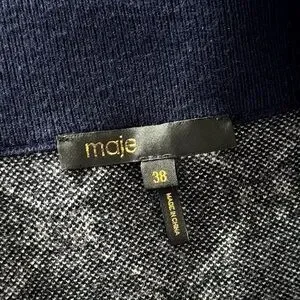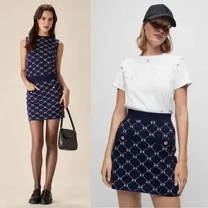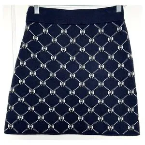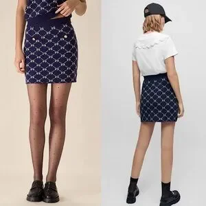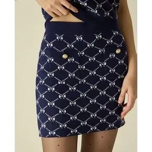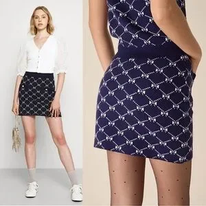 MAJE Navy Bow Design Jacquard Knit Gold Logo Button Patch Pocket Mini Skirt 6