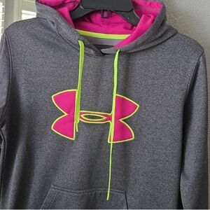 Under Armour Gray Hoodie with Pink Logo and Neon Accents